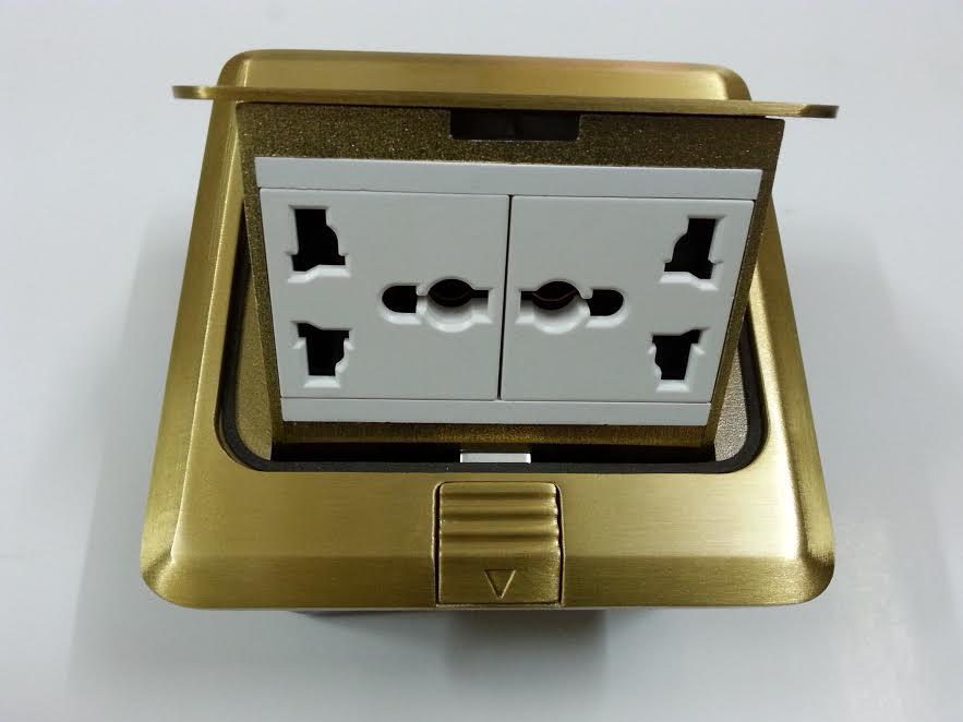 Hộp cắm âm sàn ( ổ cắm âm sàn) là thiết bị ổ cắm mạng, cắm thoại, cắm điện… là thiết bị được chờ sẵn để kết nối mà các bạn vẫn thường gặp ở nhà, văn phòng,… Từ ” Âm sàn” tức là các loại ổ cắm này được lắp đặt chìm dưới sàn nhà, hoặc trong tường, hoặc âm bàn, chỉ để hở lỗ ổ cắm ra để mọi người có thể cắm các kết nối cần thiết vào đó. Đối với ổ cắm âm sàn có đặc điểm hơi khác với ổ cắm âm tường ở chỗ sàn nhà là nơi nhạy cảm, phải chịu mọi tác động từ bên ngoài như bụi bẩn, vật dụng chèn lên…nên ổ cắm âm sàn thường được thiết kế có nắp bật lên khi sử dụng còn khi không sử dụng sẽ được đóng kín và với thiết kế kim loại đảm bảo chịu lực tác động từ môi trường rất lớn.